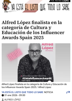 Alfred López finalista en la categoría de Cultura y Educación de los Influencer Awards Spain 2025.